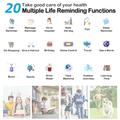 - Monitorização abrangente da saúde: Equipado com um sensor de ritmo cardíaco PPG para rastreio contínuo, monitorização do sono, alertas de sedentarismo e rastreio de calorias.