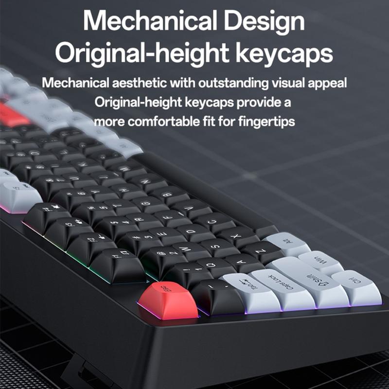 - Teclas Gradientes Tri-Coloridas - Design elegante com entalhes laterais disponível em perfis planos ou esféricos, oferecendo uma aparência moderna e premium.