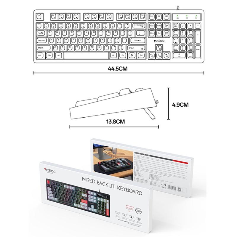 O teclado YESIDO KB44 combina uma elegante iluminação RGB com teclas silenciosas e de resposta rápida - oferecendo um equilíbrio entre desempenho, estilo e conforto. A sua construção robusta, a longa duração das teclas e o layout de tamanho normal fazem dele um excelente teclado para o dia a dia, tanto para produtividade como para lazer.