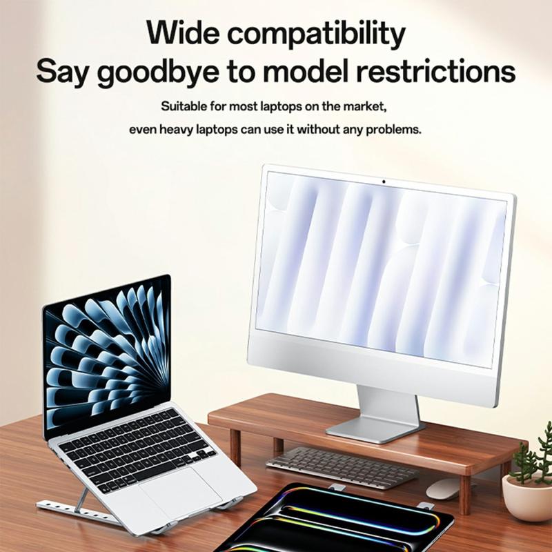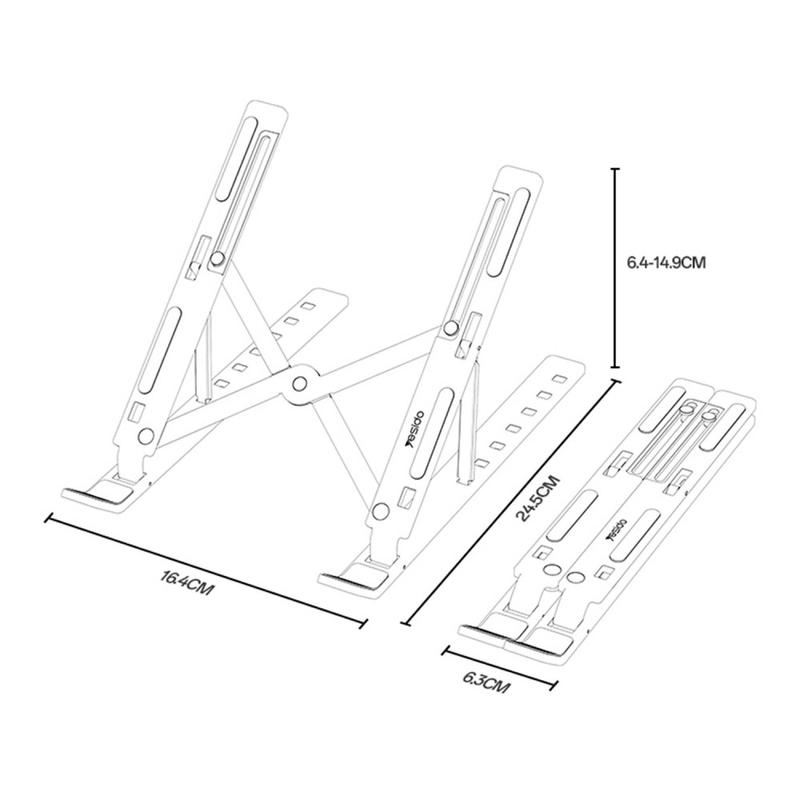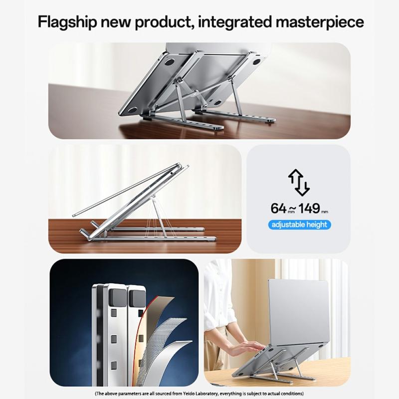 Melhore o seu espaço de trabalho com o suporte para computador portátil YESIDO LP07, um suporte ajustável para computador portátil de qualidade superior, concebido para durabilidade, conforto e estilo. Fabricado em liga de alumínio oxidado, combina um acabamento metálico elegante com uma resistência superior para suportar computadores portáteis de 13 a 20 polegadas. Com sete níveis de ajuste de altura, pode encontrar sem esforço o ângulo de visualização perfeito, melhorando a postura e reduzindo a tensão no pescoço e nas costas durante longas sessões de trabalho. O acolchoamento em silicone do suporte proporciona estabilidade antiderrapante e protege o seu computador portátil de riscos, enquanto a sua construção de engenharia de precisão oferece uma estética de primeira qualidade que ultrapassa as alternativas típicas em ferro ou pintadas. Perfeito para casa, escritório ou viagens, o YESIDO LP07 combina funcionalidade com um design requintado.