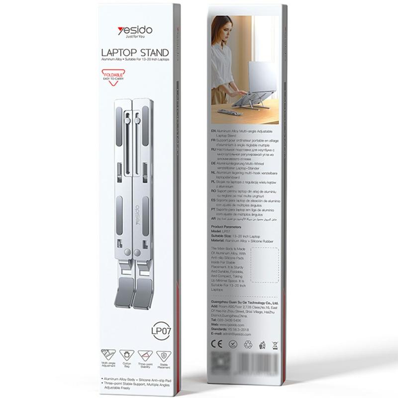 Yesido LP07 Suporte ajustável para computador portátil - Suporte de liga de alumínio ajustável em altura para computadores portáteis de 13-20"