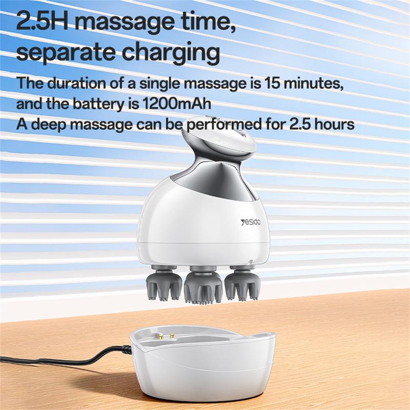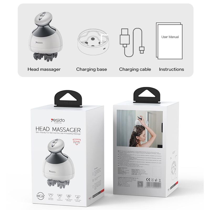 YESIDO MG12 Massajador para a cabeça de baixo ruído à prova de água IPX7 com base de carregamento amovível