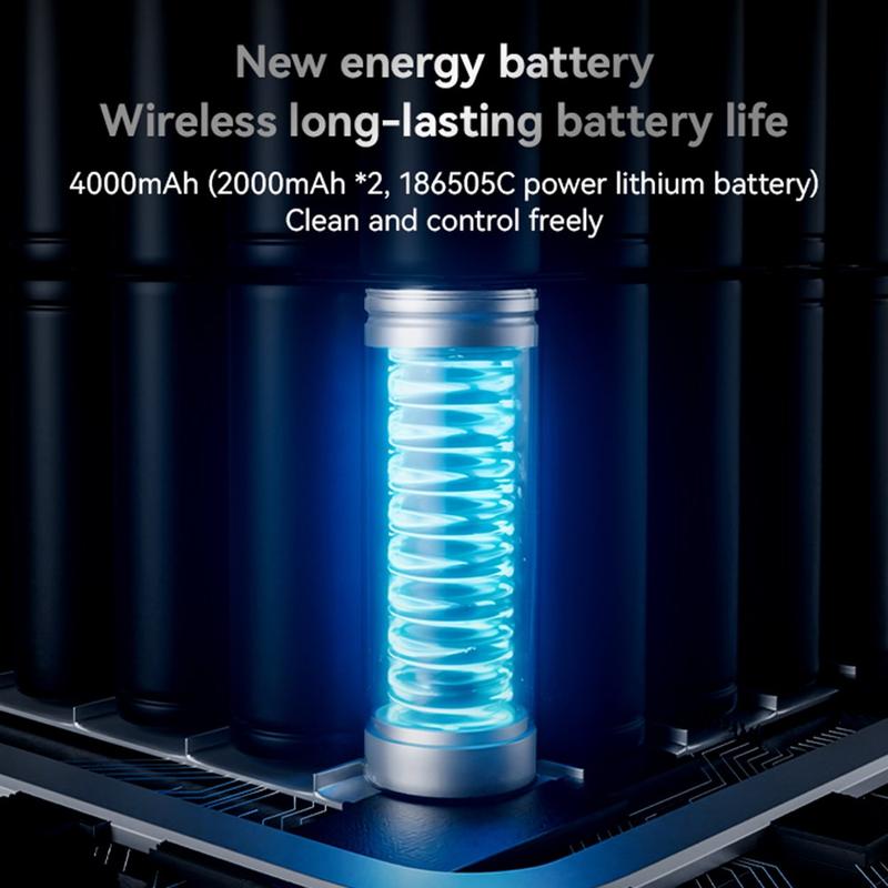 - Bateria recarregável de 4000mAh: Alimentado por duas baterias de lítio de 2000mAh com carregamento Tipo C (5V / 2A).