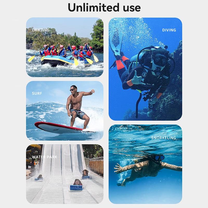 Esta bolsa flutuante à prova de água oferece fiabilidade e conveniência, garantindo paz de espírito, independentemente de onde as suas aventuras o levem. Graças ao seu filme de PVC cristalino e à construção em TPU de alta qualidade, pode operar facilmente as funcionalidades do ecrã tátil do seu telefone - mesmo debaixo de água. A fivela de fecho seguro e a almofada de ar insuflável proporcionam uma camada extra de segurança, fazendo deste o acessório ideal tanto para quem procura emoção como para os entusiastas casuais da água.