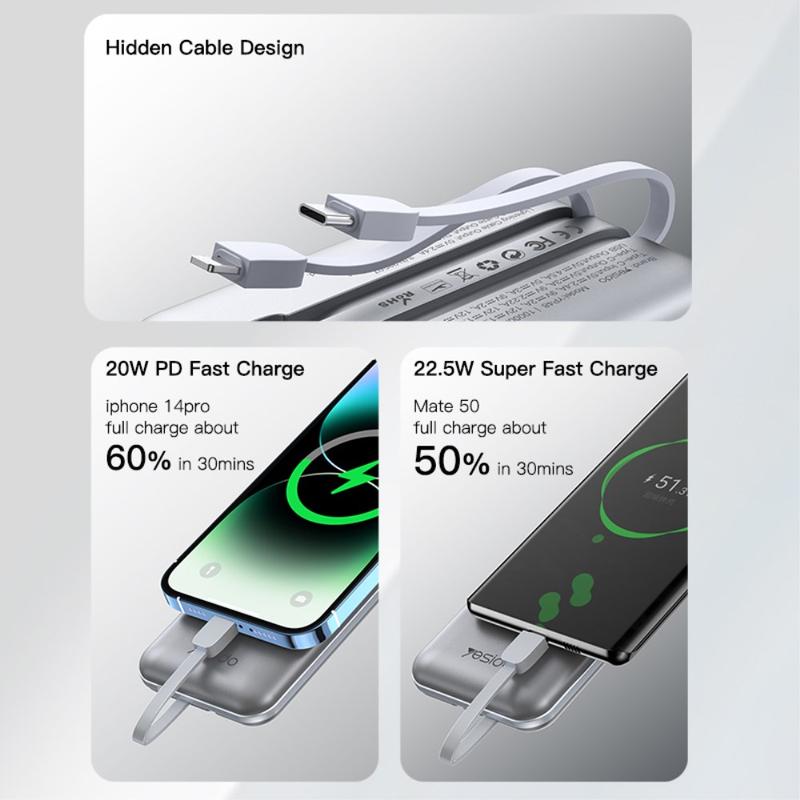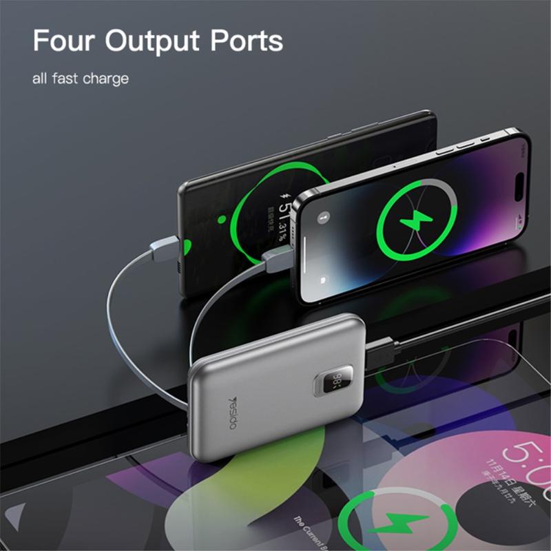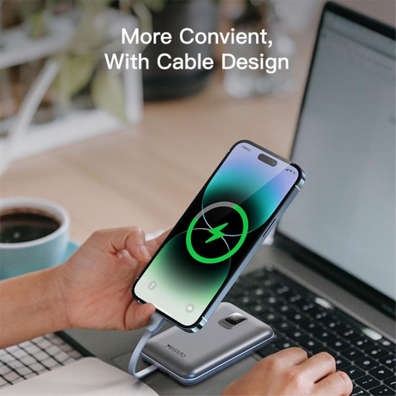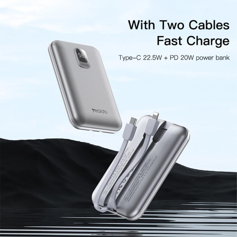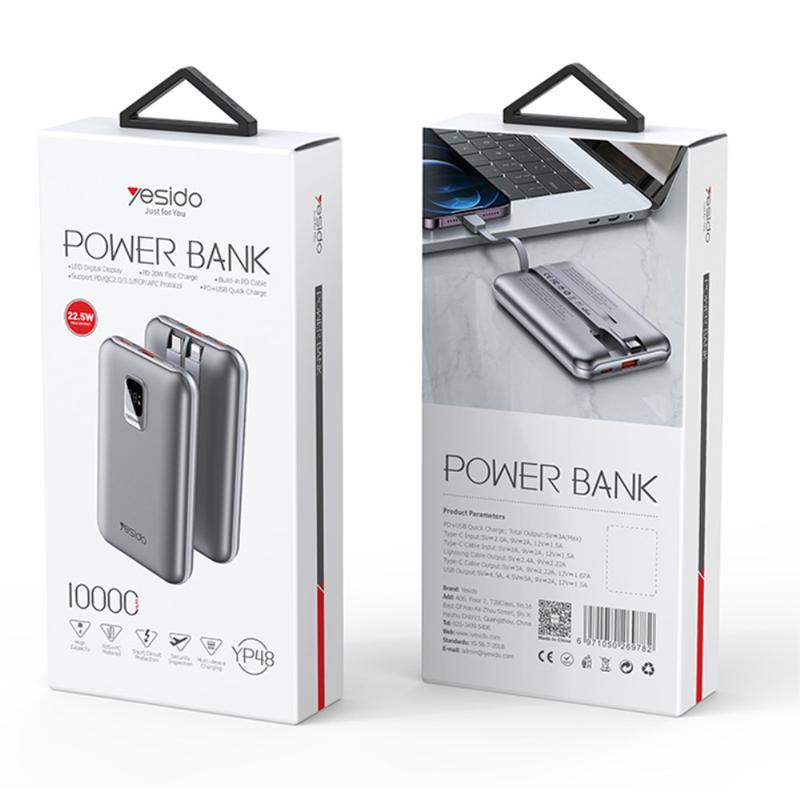 YESIDO YP48 Carregador portátil de banco de potência de 10000mAh de tamanho compacto com cabo iOS+Tipo C