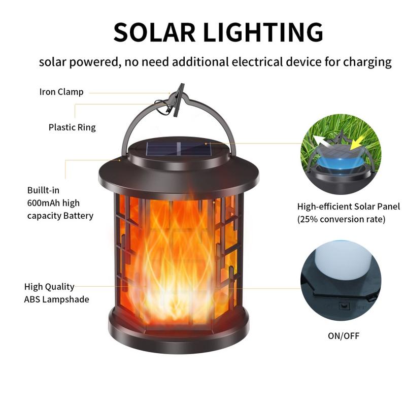 YY-91008B Luz solar suspensa/lanterna com efeito de chama tremeluzente para jardim, quintal