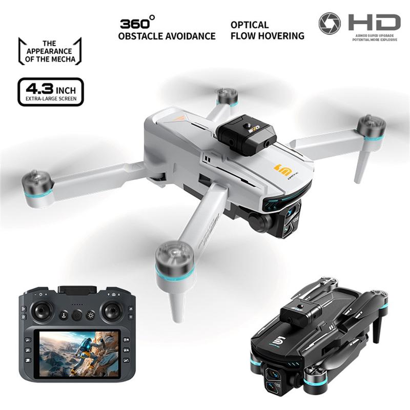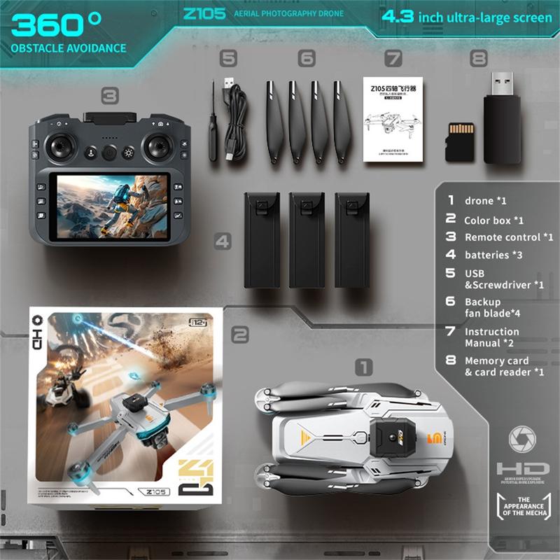 Z105 Drone inteligente de câmara dupla com controlador de ecrã de 4.3" e 3 baterias - Quadcopter com motor sem escovas para evitar obstáculos